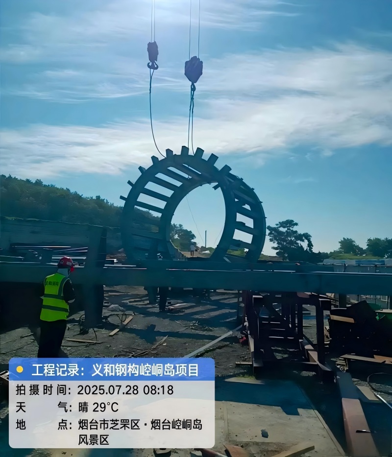 最近では、煙台市の文化・観光の重点プロジェクトである孔塘風景区の東遊プロジェクトが行われている。劇場センターの円形トラス梁の吊り上げという重要な建設マイルストーンが達成されました。現場では、650トンのクローラークレーンがゆっくりと上昇し、劇場の中心部分にある24トンの円形トラス梁が正確に吊り上げられました。東洋神話を上演するこの劇場が正式に「スチールバックボーンこの重要なプロセスは、鉄骨構造エンジニアリングの建設における重要な段階的な進歩を示し、プロジェクト全体の秩序ある推進に有利な条件を作り出します。