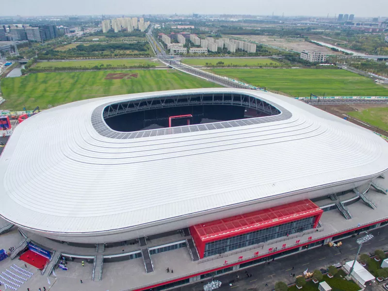 上部は通常、軽量の金属シートまたは半透明の膜材料で覆われています。これは、構造の安定性を確保するだけでなく、美学と照明の要件を考慮しています。グリッド構造やトラスなどのテクノロジーを通じて、大規模な柱のないスペースデザインを実現し、会場内で柔軟なレイアウトを可能にし、観客にオープンで遮るもののないビューを提供します。